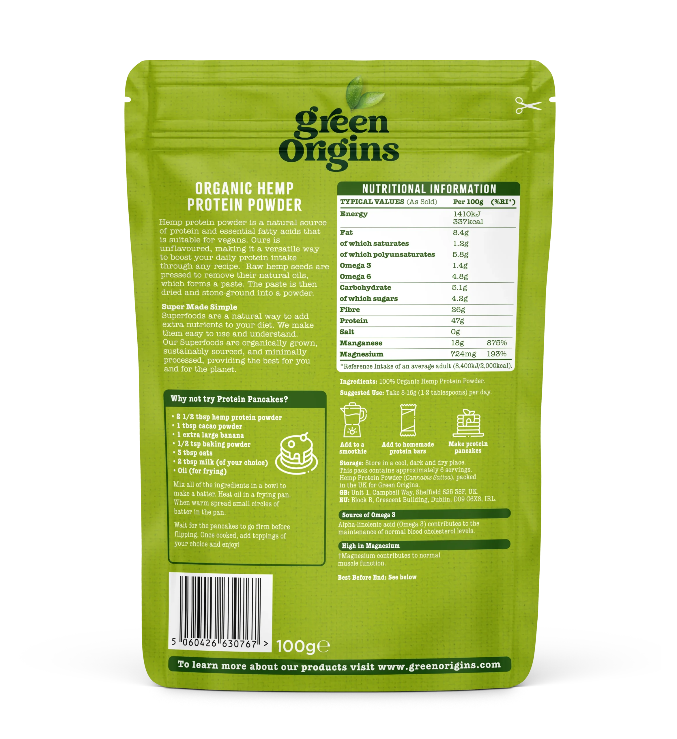 A seed of cannabis Sativa L, hemp is a non-drug variety of cannabis. This remarkable ā€œsuperfoodā€ is a natural source of protein, with essential amino and fatty acids including Omega 3-6-9. Raw hemp seeds are selected for the finest quality and then pressed to separate the hemp oil from the solids and form a cake. Once dried, this is ground to hemp powder to sift out the fibre and retain the protein elements.